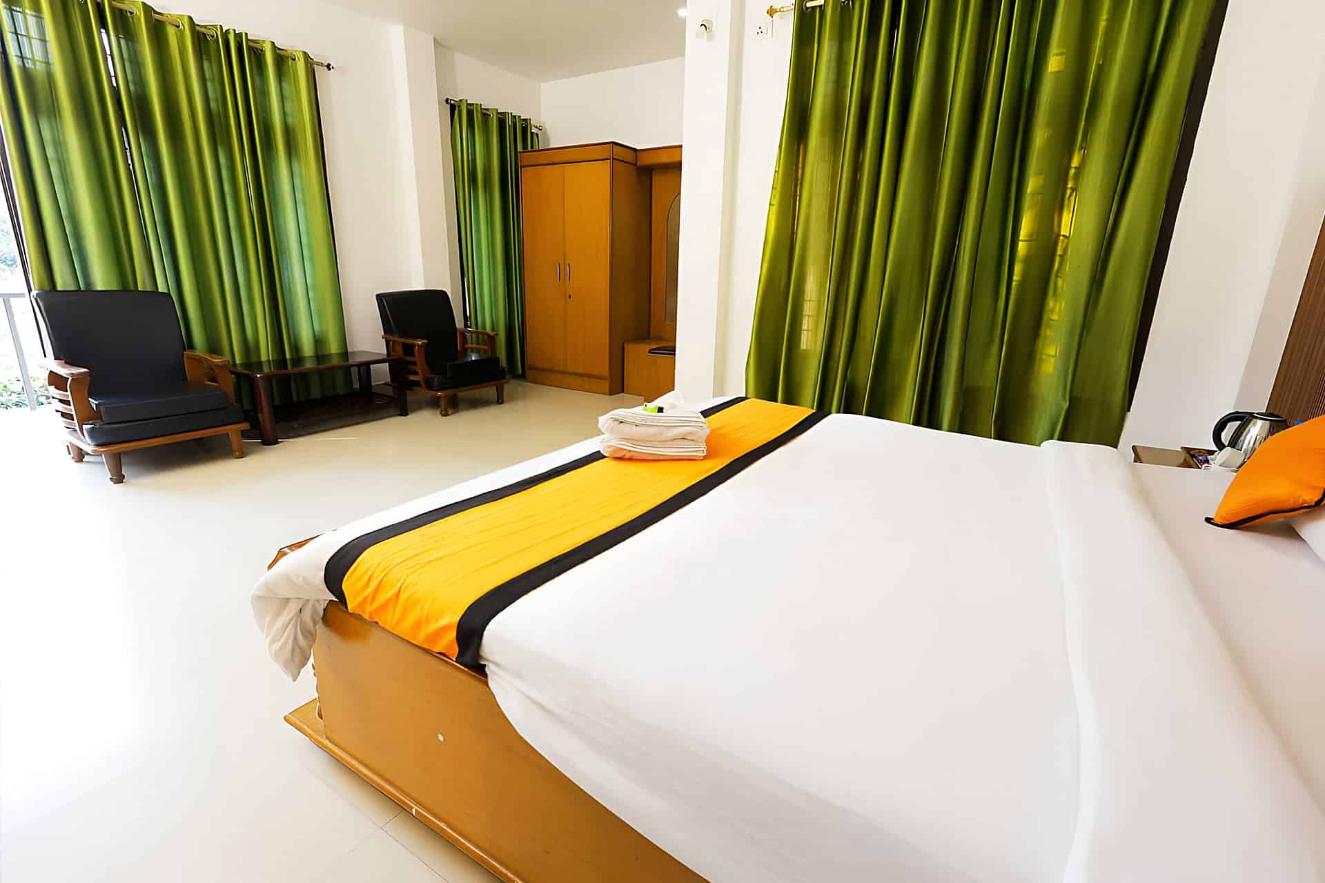 King-sized or twin beds with soft mattresses, crisp linens, and fluffy pillows ensure deep, undisturbed sleep.